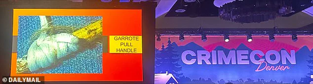 Haddon, who has represented John Ramsey since the early days of the investigation, emphasized the significance of the garrote during his remarks. ‘I have pressed hard for DNA analysis of the knots in this garrote,’ he told the audience, noting that experts believe the knots could hold crucial evidence. ‘Someone had to tie those—and they’re fairly sophisticated.