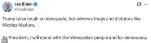 In that post, Biden criticized Trump for ‘admiring thugs and dictators like Nicolas Maduro,’ a claim that has now taken on new irony.