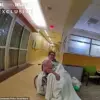 The footage shows her attempting to walk away from the hospital on her own before officers intervened.